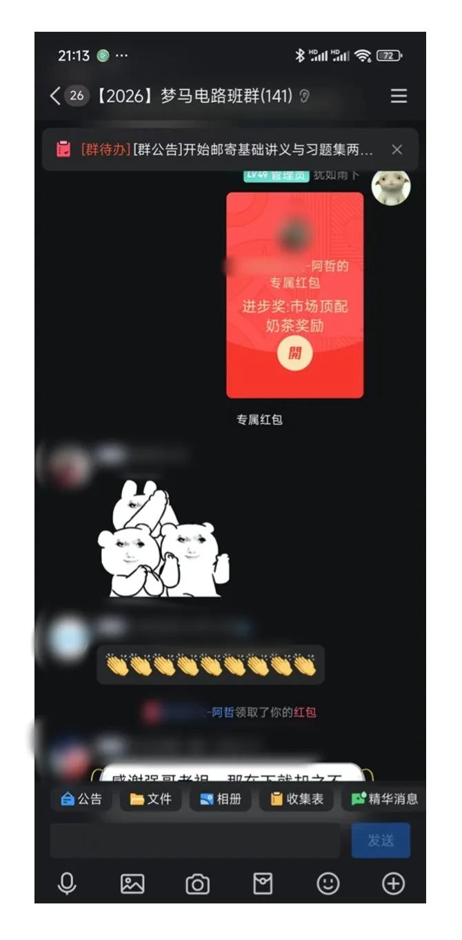大家都是散落在五湖四海的考研er们,既然能在这个班里面大家一起进步,我还是希望能给大家创造一个比较好的空间和氛围,给到大家全方位的激励。